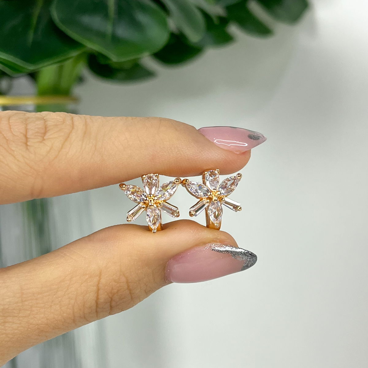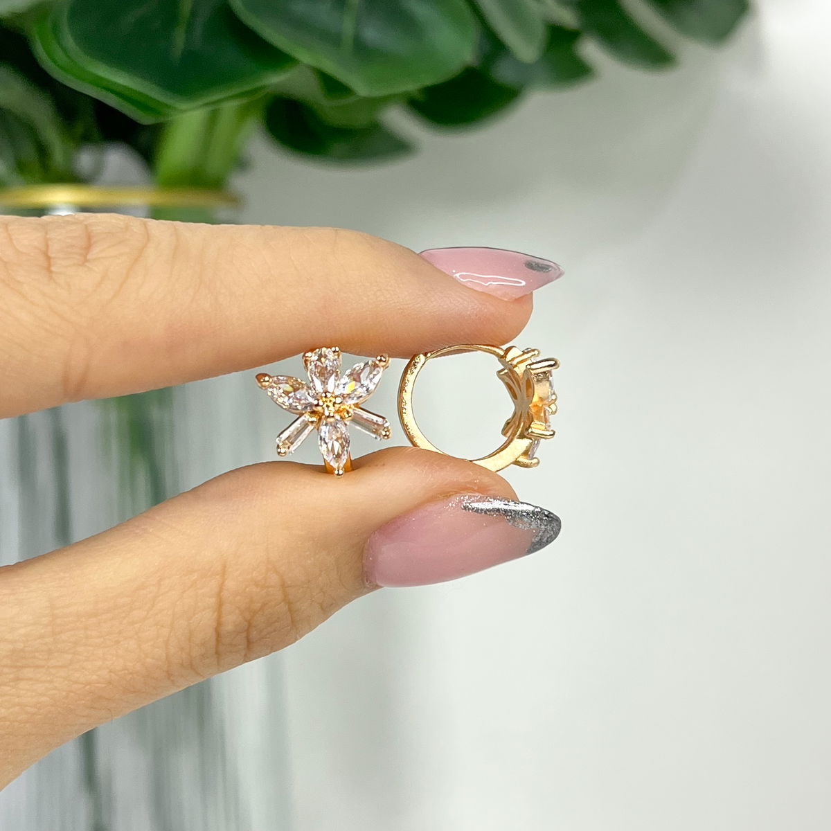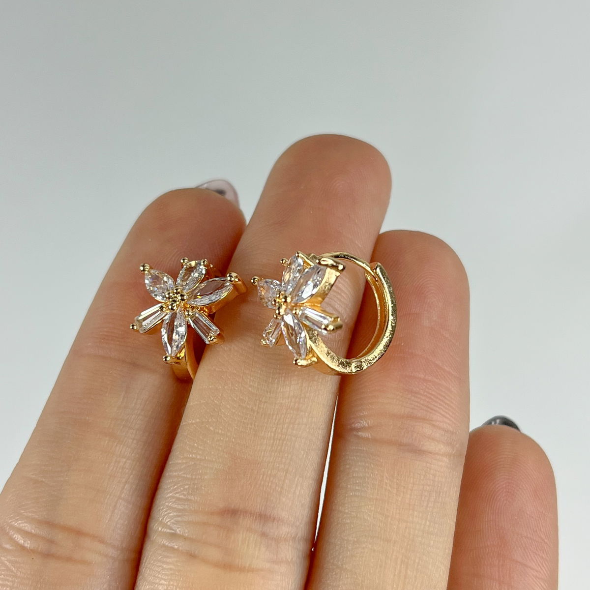 Argollitas de acero dorado y piedras con cierre click.