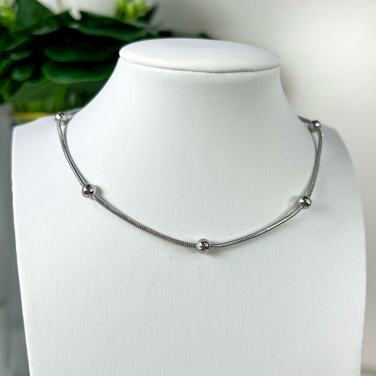 Cadena cola de rata y bolitas.