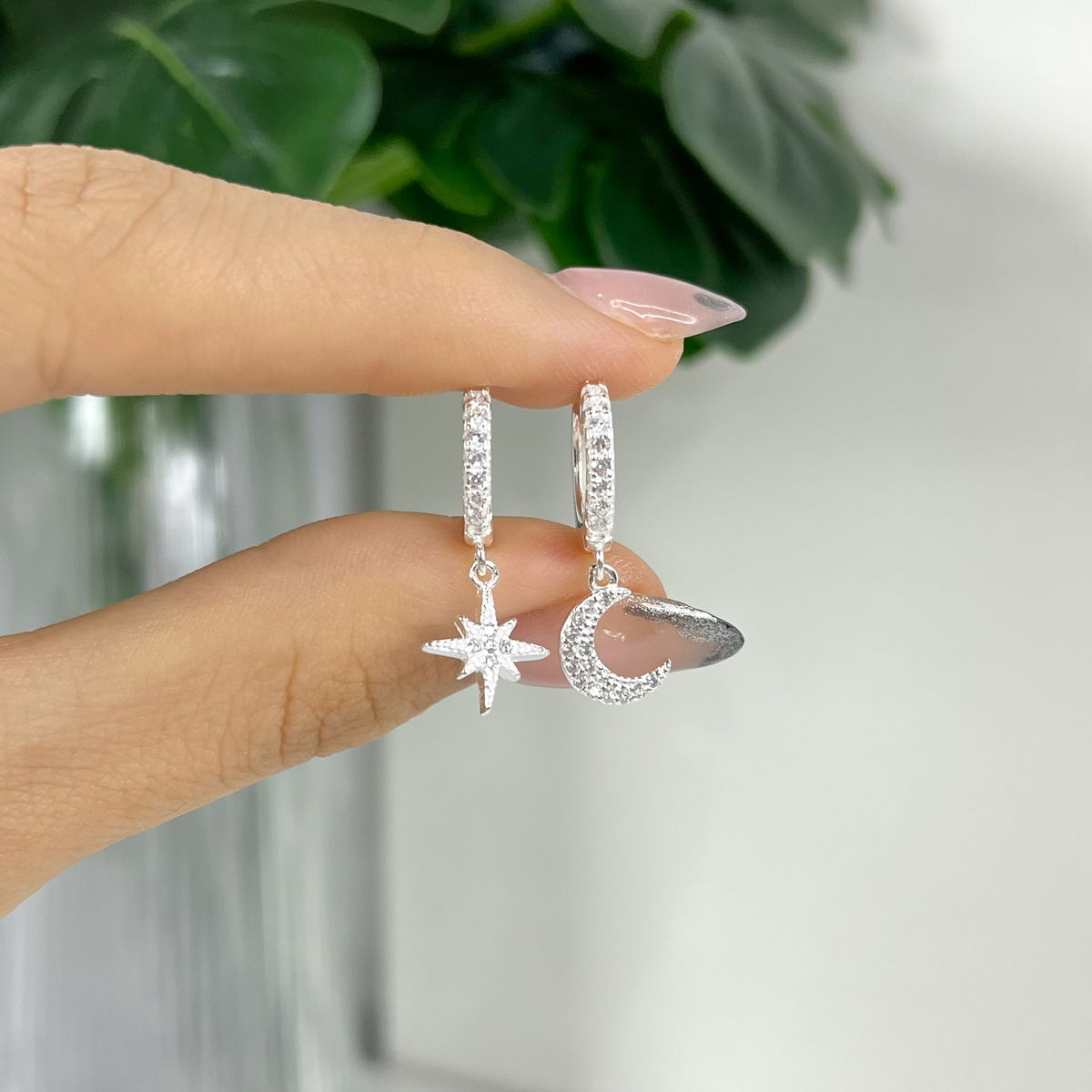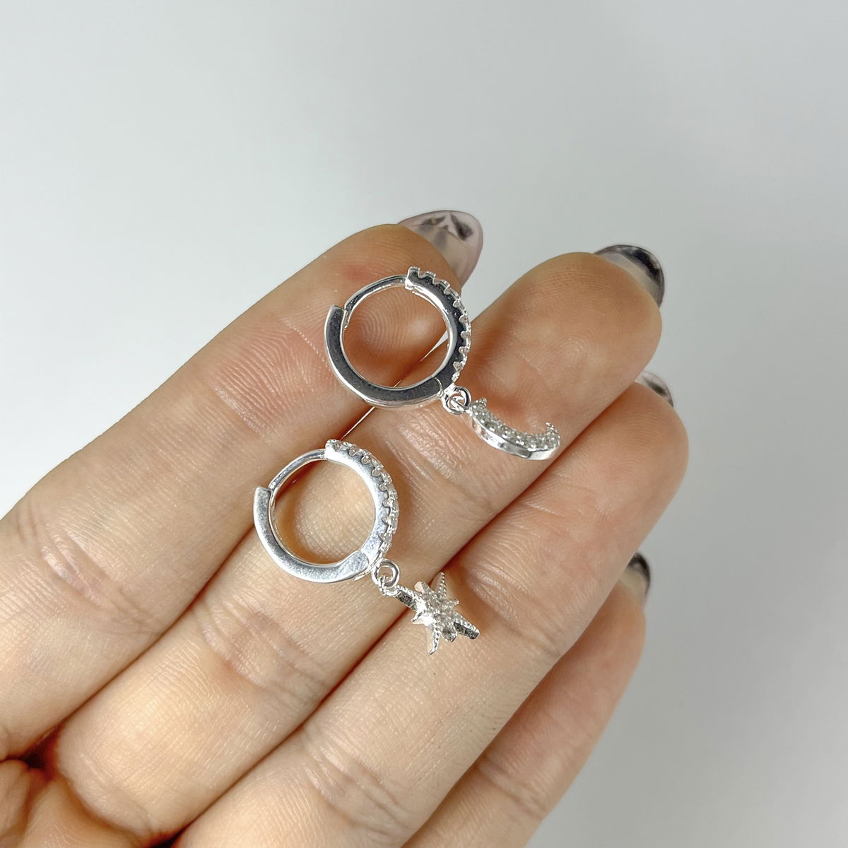Argollas de Luna y Estrellas 14mm Plata 925