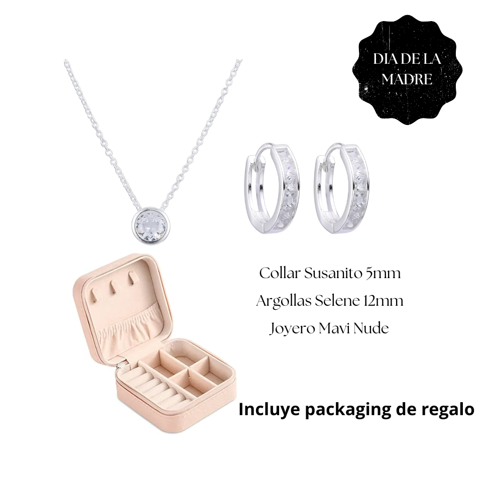 Collar Susanito 5mm + Argollas Selene 12mm + Joyero Mavi Nude