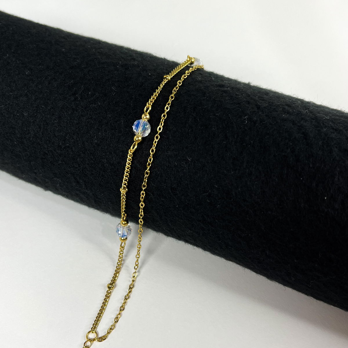 Pulsera doble de acero dorado y cristales.