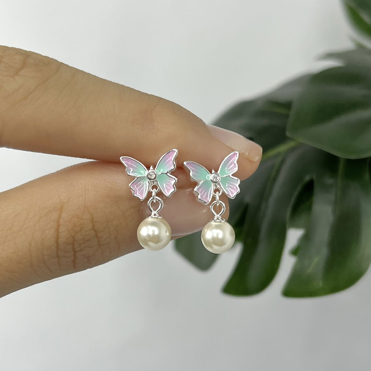 Aros de mariposas y perla