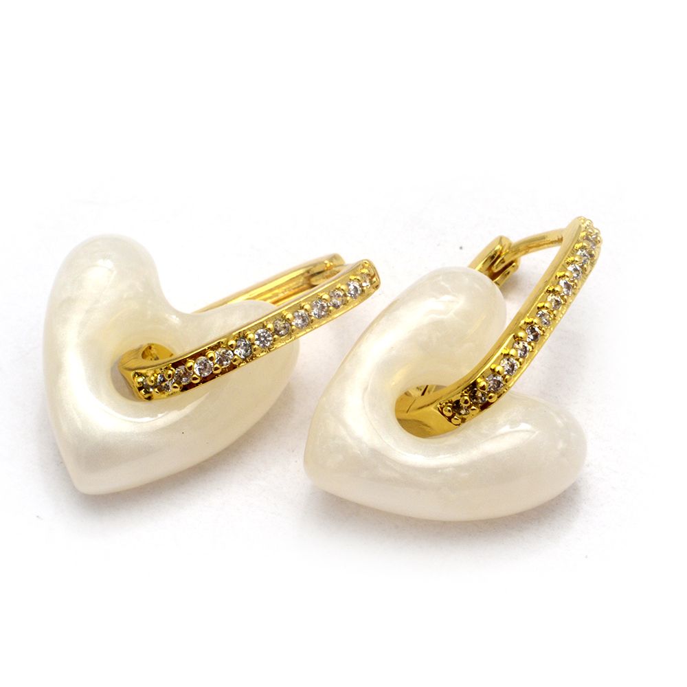 Argollas de acero dorado con cubic y corazon blanco 1,8Cm